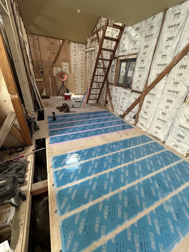 電気シートタイプの床暖房を新設し、ガスファンヒーター用のガス栓も設置しました。